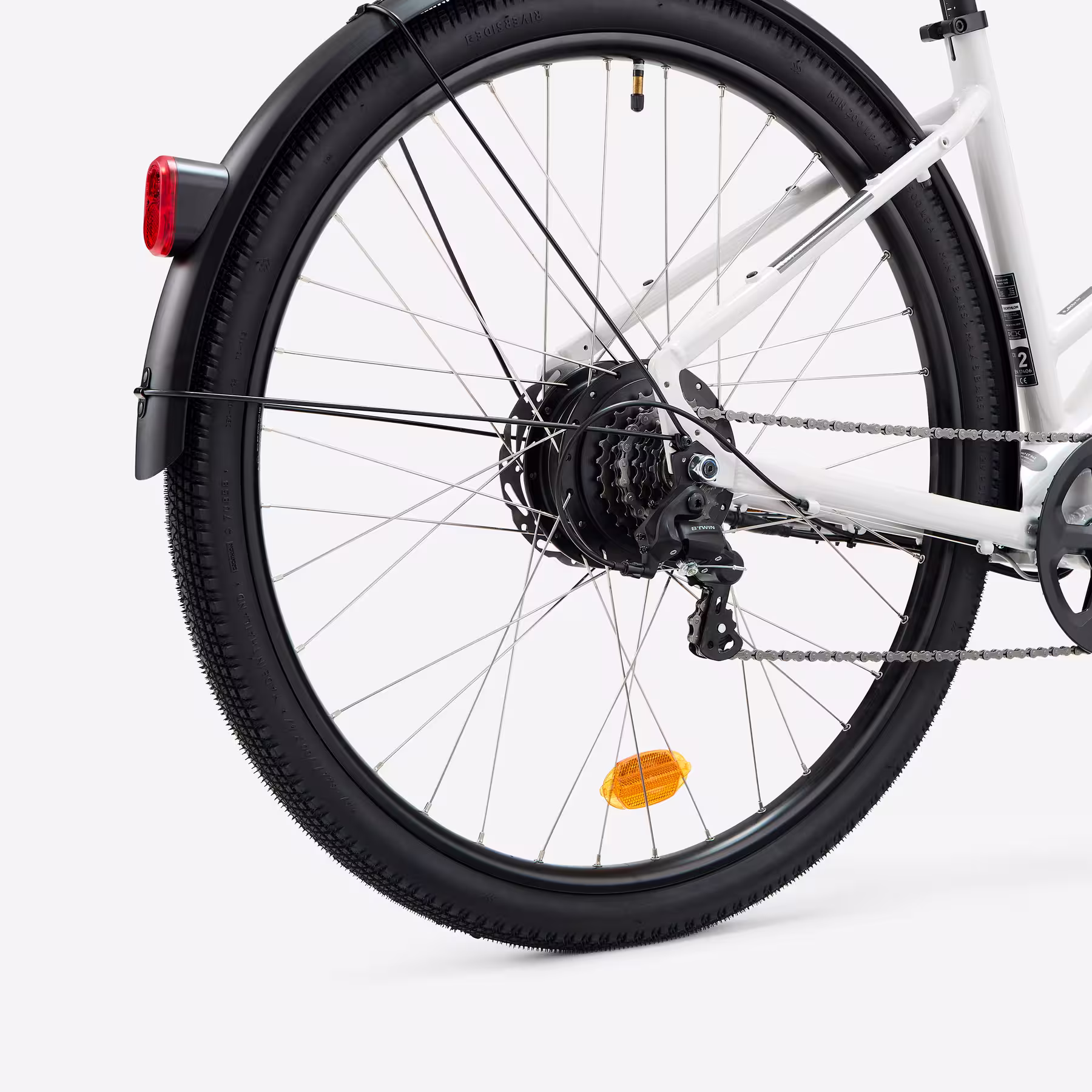 La fourche suspendue 60 mm améliore le confort, tandis que les pneus tout chemin avec double protection anti-crevaison (score 4,5/5) sécurisent vos trajets. L’éclairage LED intégré, les garde-boue et la compatibilité porte-bagages et siège enfant renforcent son usage quotidien.