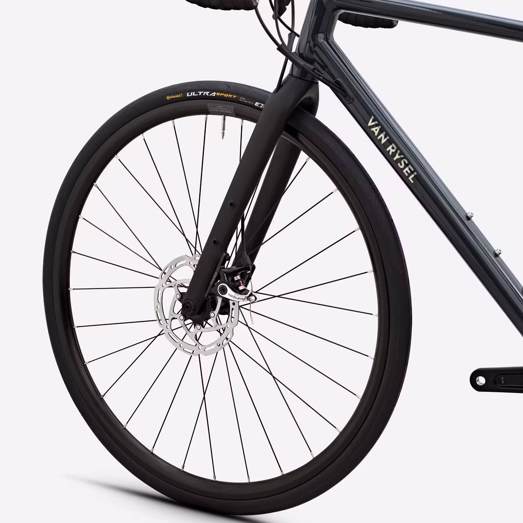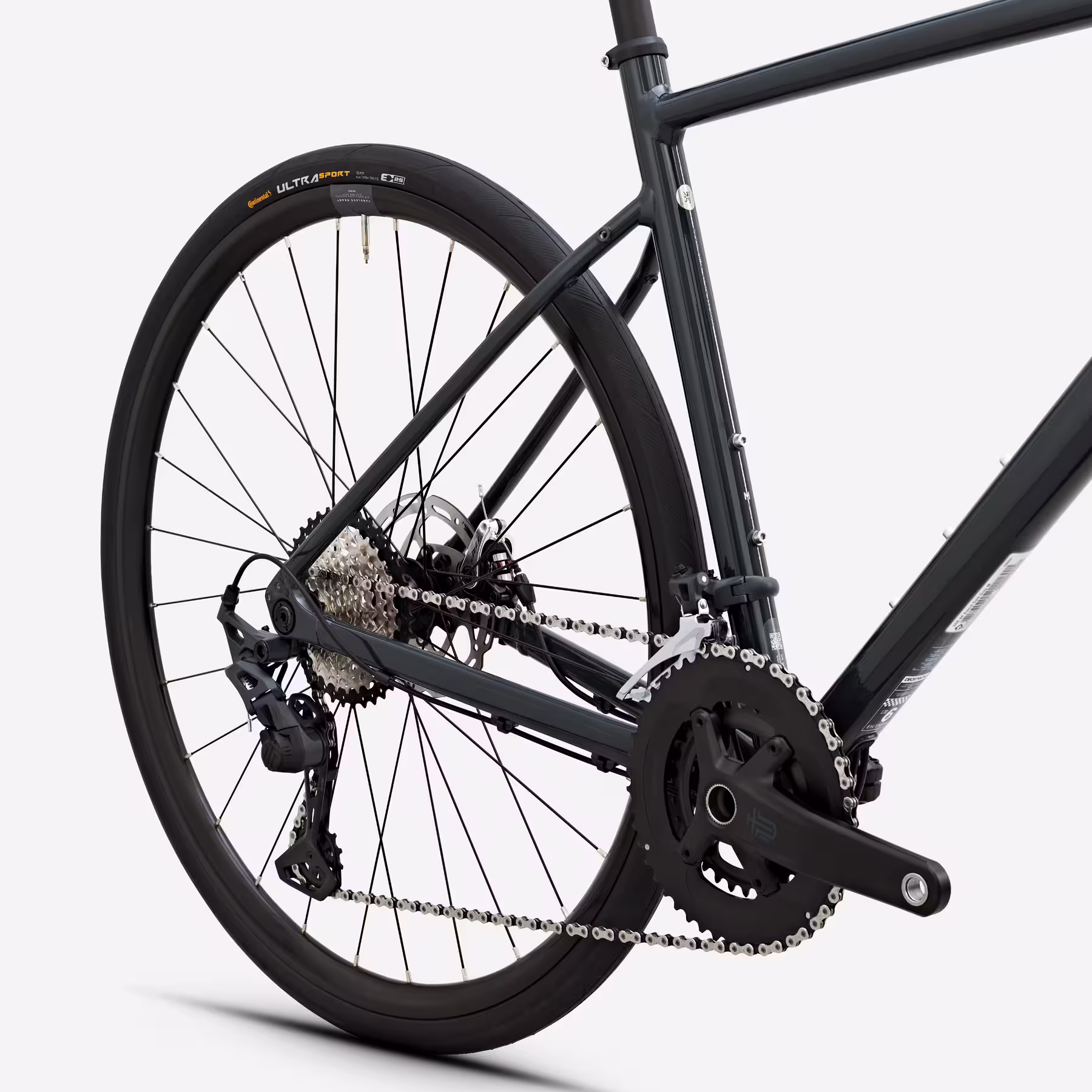 Les roues aluminium tubeless ready associées aux pneus Continental Ultra Sport 700×32 assurent rendement et confort. Le cadre accepte des pneus jusqu’à 38 mm (35 mm avec garde-boue) pour plus de polyvalence.